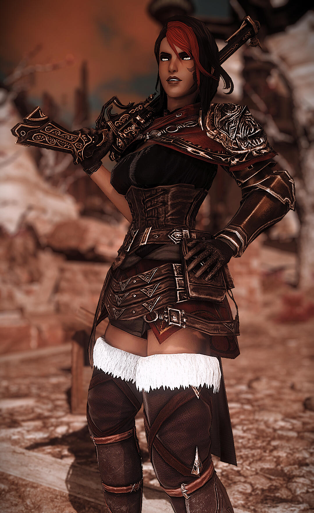 The spunky young Xaela brings a sense of uninhibited fun to the group and is more than willing to drag them out on bar crawls, shopping trips, or whatever she's in the mood for as often as possible. She also has no qualms about grabbing any of the males of the group by the scruff and pounding some sense into them, when needed.