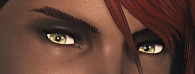 HEIGHT: 5'8".BUILD: Toned.HAIR COLOR: Black w/ Red Highlights.EYE COLOR: Pale Grey-Green.SKIN TONE: Bronze.SCARS: Various bullet, knife and...horn scars.MARKINGS: Tribal tattoo on left cheekOTHER: Wears an onyx and platinum wedding band on her left ring finger.